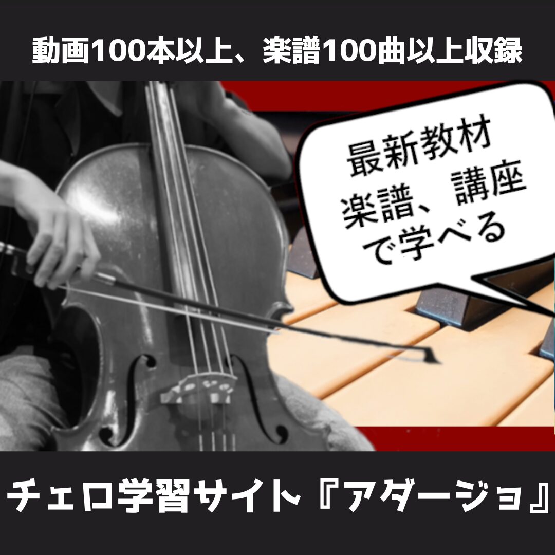 チェロ学習サイト「アダージョ」は、100冊以上の楽譜100本以上の動画10年以上学べる無数のコンテンツなど、非常に豊富なコンテンツを収録しています。練習曲もウェルナーやリー、シュレーダー、ドッツァウアー、他有名な曲も収録しており、現在もっとも人気のある学習コンテンツです。(こちらは、永年閲覧権の買い切りサービスとなっております。新しいコンテンツも毎月更新しております。)